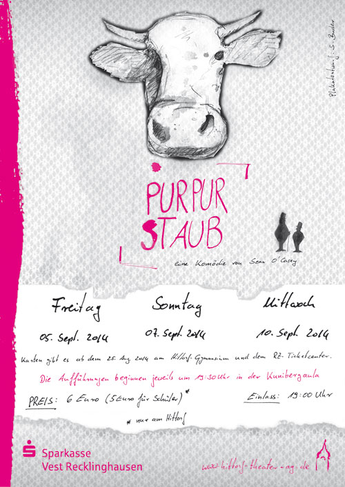 | 2014 - das Stück mit der Kuh. Zwar taucht sie im Stück nicht leibhaftig auf aber auf dem Plakat wird sie dafür würdig in Szene gesetzt. | ||