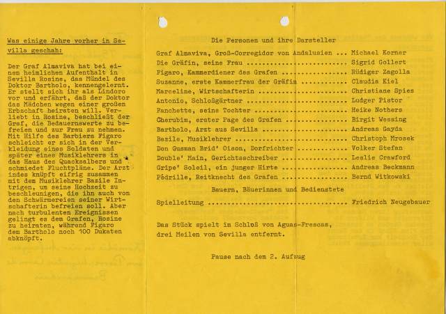 1979 steht wieder ein Jubiläum an: Das Hittorf-Gymnasium wird 75 und aus diesem Anlass präsentiert die Theater AG "Figaros Hochzeit" von Beaumarchais im großen Saal des Ruhrfestspielhauses. Das soll es erst 25 Jahre später wieder geben, dann nämlich zum 100jährigen. In der Rolle des Gärtners überzeugt ein junger Ludger Pistor aus Herten, der später in Ein Schnitzel für zwei, Inglouriuos Basterds oder James Bond Karriere machen sollte. Es soll das Abschiedsstück für Friedrich Neugebauer werden.