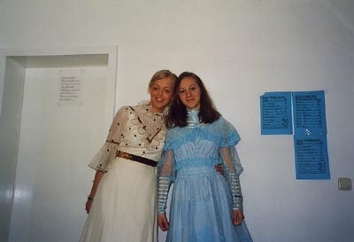 möchten wir sagen, an all jene, die trotz Fußball-WM und zahlreichen kulturellen Zusatzterminen, den Weg in die, wie gewohnt, heiße Kunibergaula gefunden haben. Danke, an all jene, die diese Saison das Projekt getragen und ermöglicht haben, sei es auf oder hinter der Bühne. Danke, auch an unsere Gaststars "Michael" und "J.R." mit denen es wahnsinnigen Spaß gemacht hat und die nicht bloß auf der Bühne, sondern auch beim Feiern eine super Figur gemacht haben. Danke, an Frau Scheidt und Frau Dreyer, die den weiten Weg aus Duisburg zu uns gefunden haben um ihre Kostüme in Aktion zu sehen... Danke, Danke, Danke! Wie anstregend das Jahr war, wurde oft genug erwähnt, ist es nun an der Zeit zu sagen: ES HAT SICH MEHR ALS GELOHNT! Wieder einmal hat die Theater AG sich einer Herausforferung gestellt und diese gemeistert. So empfinden wir es und die Resonanz gibt uns in unserer Selbsbeweihräucherung recht. Für Verwirrung bei unseren treuen Fans hat lediglich die Terminverlegung der Werner-Herwig-Preis-Verleihung gesorgt. Wir haben es versäumt unsere Zuschauer am Dienstag darauf hinzuweisen, denn da die Preisträgerin "Juli" bereits am Samstag die Vorstellung besuchte, mussten wir etwas umdesponieren. Nun aber genug der Worte. Lassen wir die Saison in Bildern noch einmal Revue passieren, bevor es wieder ruhig wird auf dieser Seite. Herr Reppert hat sein Foto im Ensemble bekommen und neue Fotos des Monats sind bereits in Arbeit und werden noch vor der Sommerpause hier erscheinen.